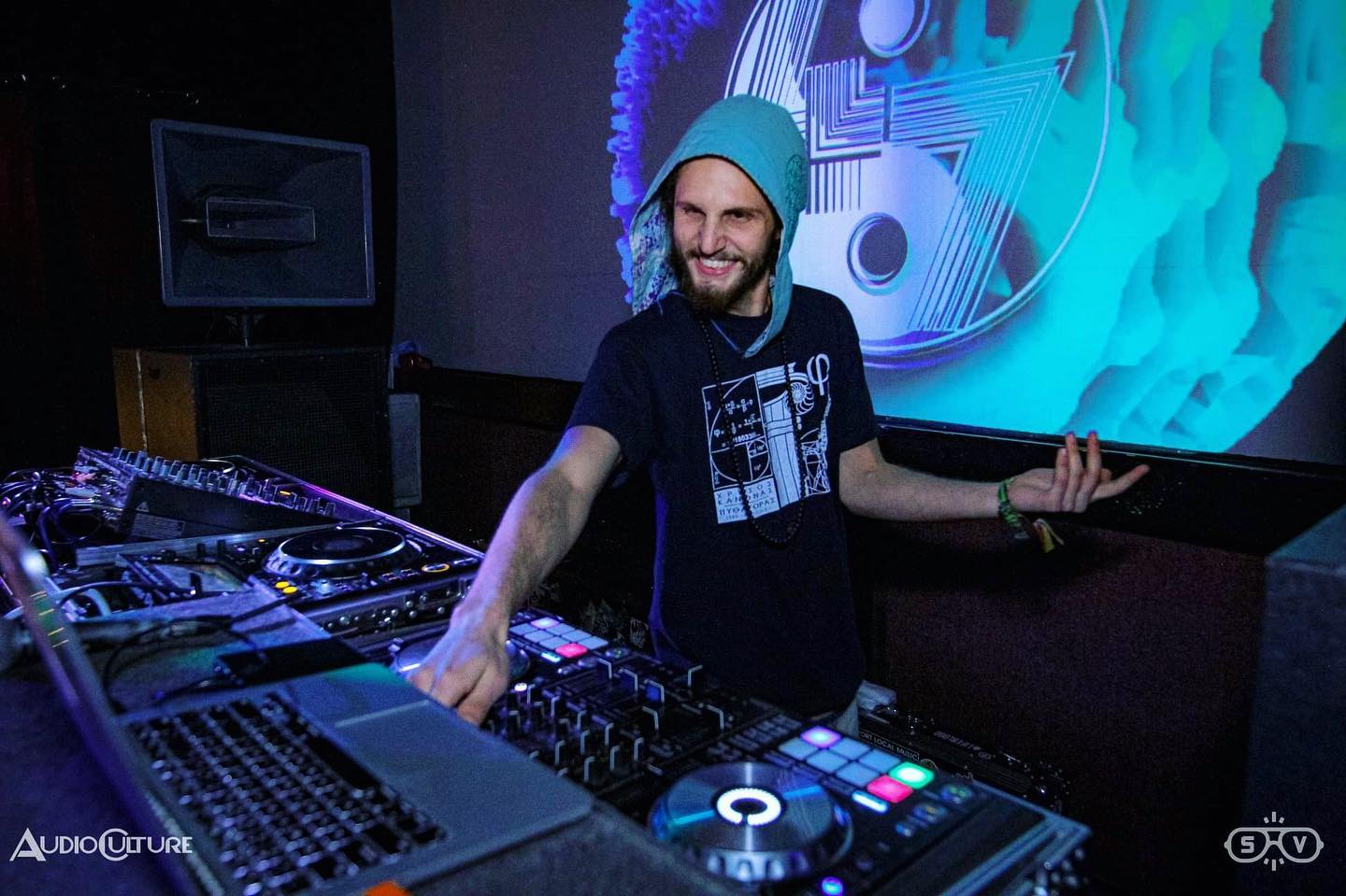 I love creating a cohesive journey of chuggy grooves and basslines mixed with psychedelic textures. I pull from house, techno, acid, 90's rave, deep tech, breaks, indie dance/disco, and dub. I'm very all over the place, but I put it all together very seamlessly.